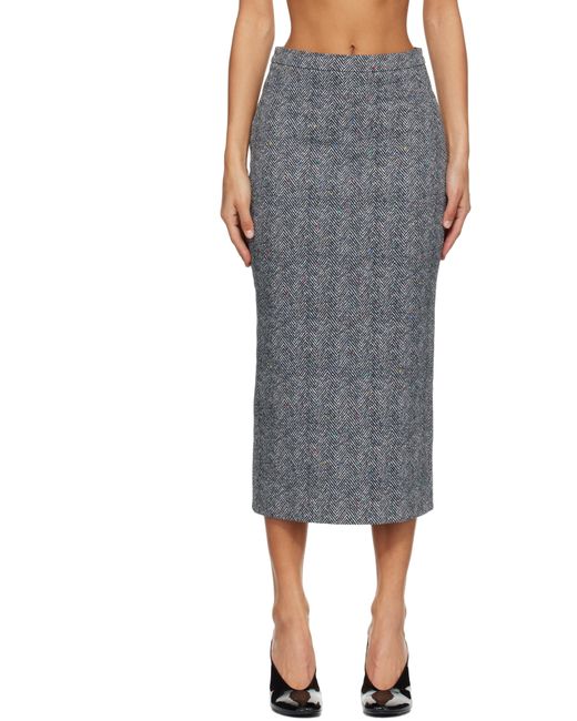 Cotton twill midi skirt. · Herringbone pattern throughout · Polka dot pattern throughout · Concealed zip closure at back waistband · Pinched seam at back · Satin lining Supplier color: Black/White Colour: grey