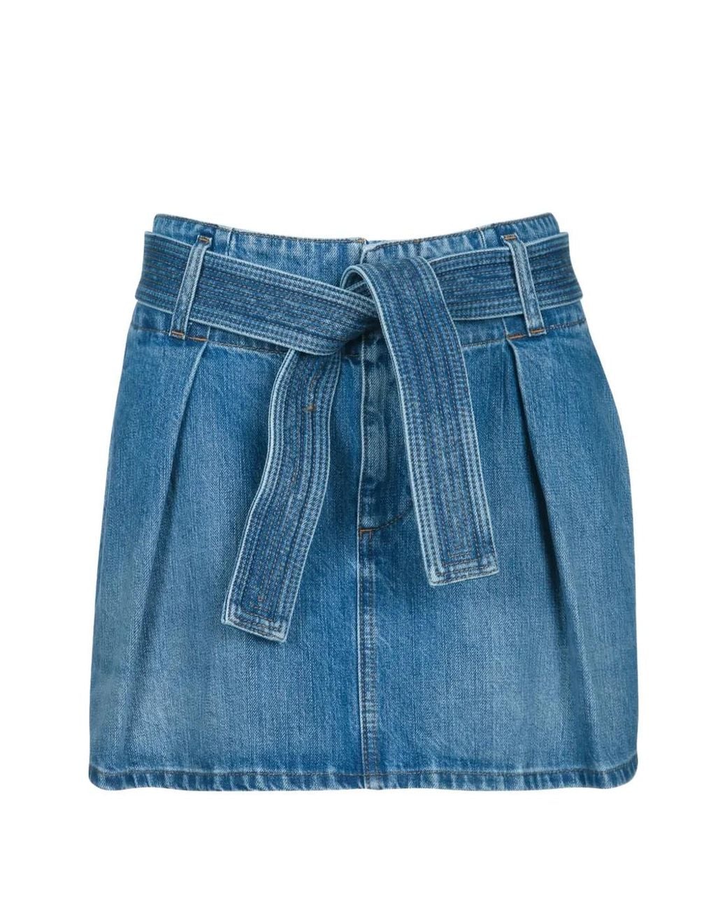 Medium blue cotton faded wash belted waist box pleat detail two rear patch pockets embroidered logo to the rear belt loops Size: 36. Gender: Female. Material:Cotton/Polyester/Cotton. Colour: blue