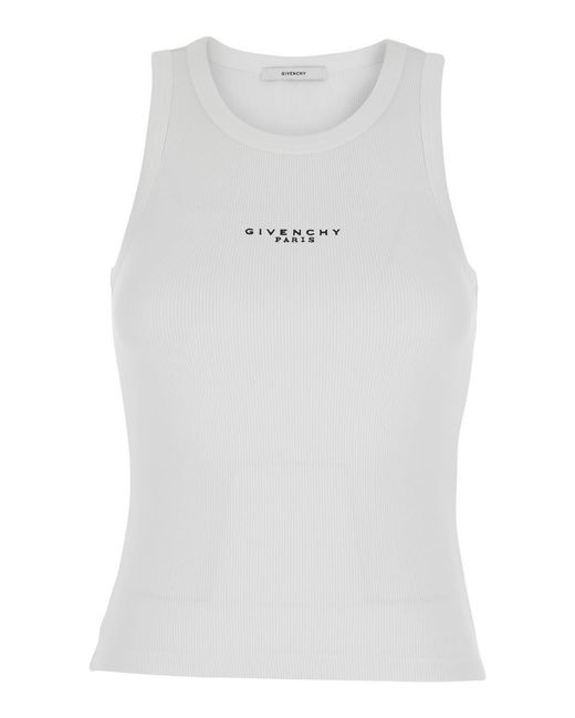 Women's White Sleeveless Top With Logo Lettering On The Front