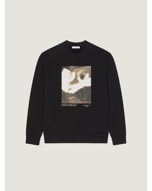 Surrealist prints of gloves and accessories from the Givenchy Winter 2025 collection reflect the cultural references and objects that shape Sarah Burton's designs.- Long-sleeved sweatshirt in fleece. - Crew neck. - Surrealism print on the front. - Small GIVENCHY Paris signature printed on the front. - Ribbed collar, hem and cuffs. Colour: black