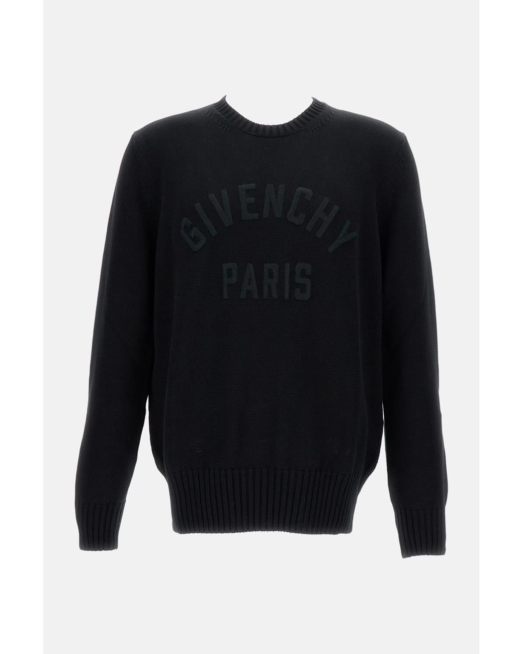 Cotton sweatshirt made in Italy with embossed embroidery on the chest. Black colorComposition: 100% Cotton