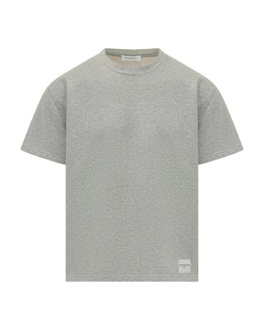 Givenchy soft sweatshirt-style T-shirt with a logo patch at the hem, designed for a relaxed, everyday look that mimics sweatshirt comfort in a T‑shirt silhouette. Key attributes: Grey | Light grey melang | Cotton | Sweatshirt-style silhouette | Logo patch at hem | Dimensions & fit: Regular fit | True to size | Composition & care: 100% cotton Colour: grey