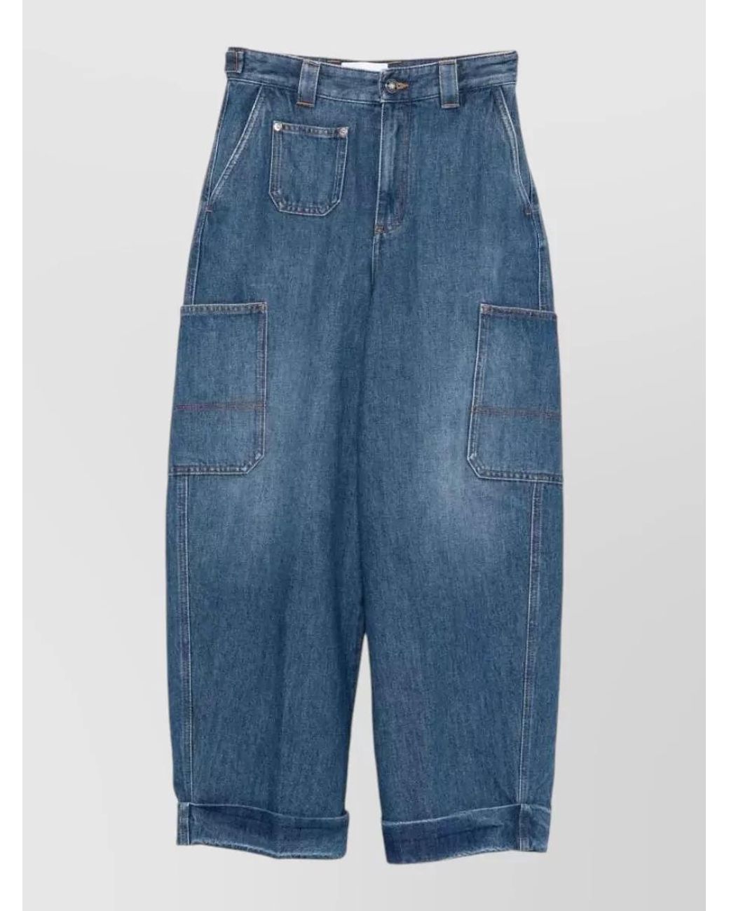 Women's Blue Cropped Utility Denim Wide-Leg Trousers