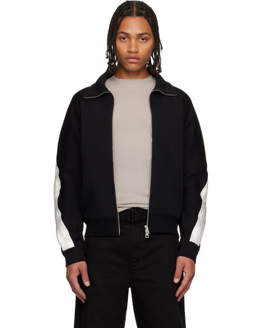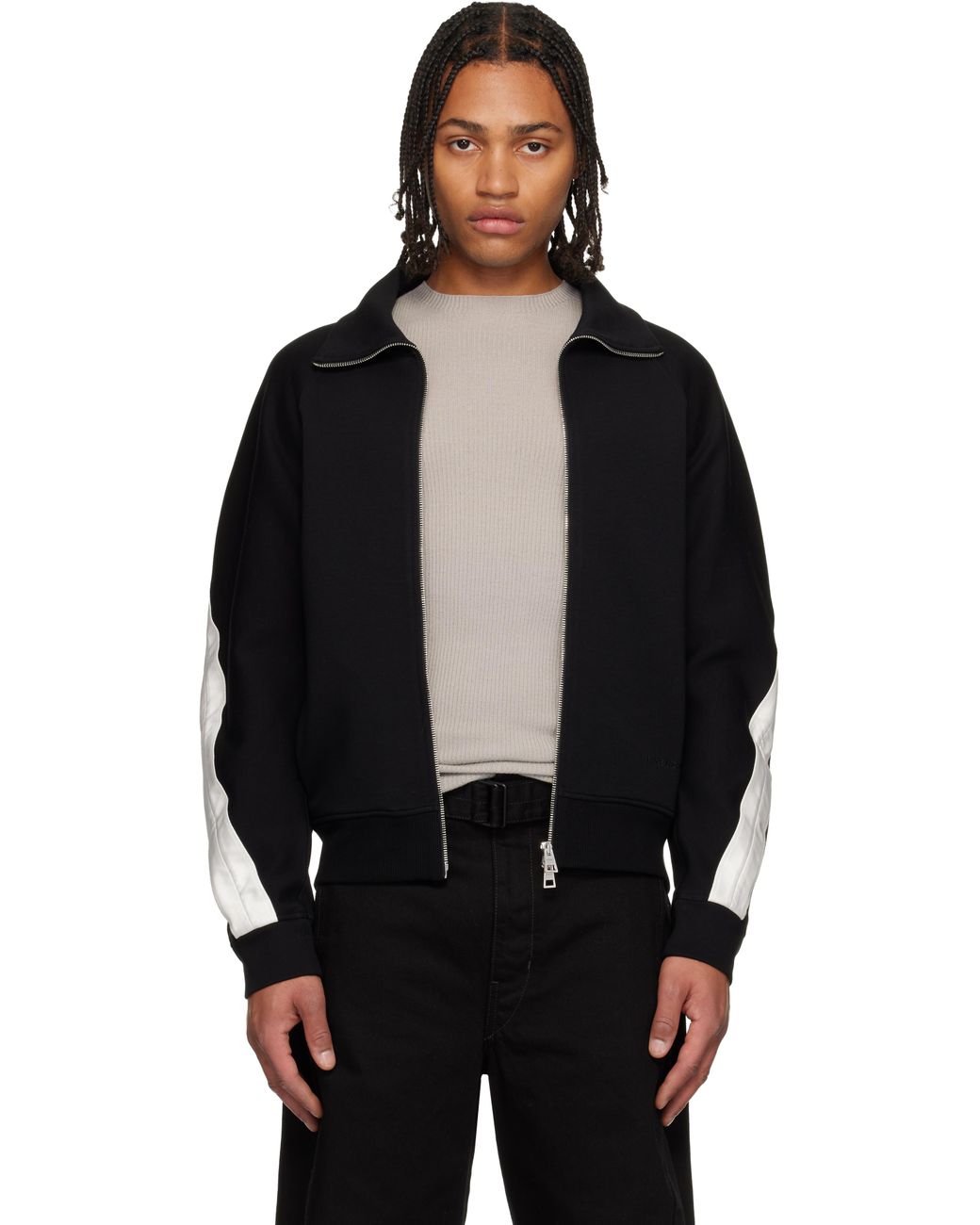Cotton-blend jersey sweatshirt. · Stand collar · Two-way zip closure · Seam pockets · Rib-knit hem and cuffs · Satin stripe appliqué at raglan sleeves and back Supplier color: Black Colour: black