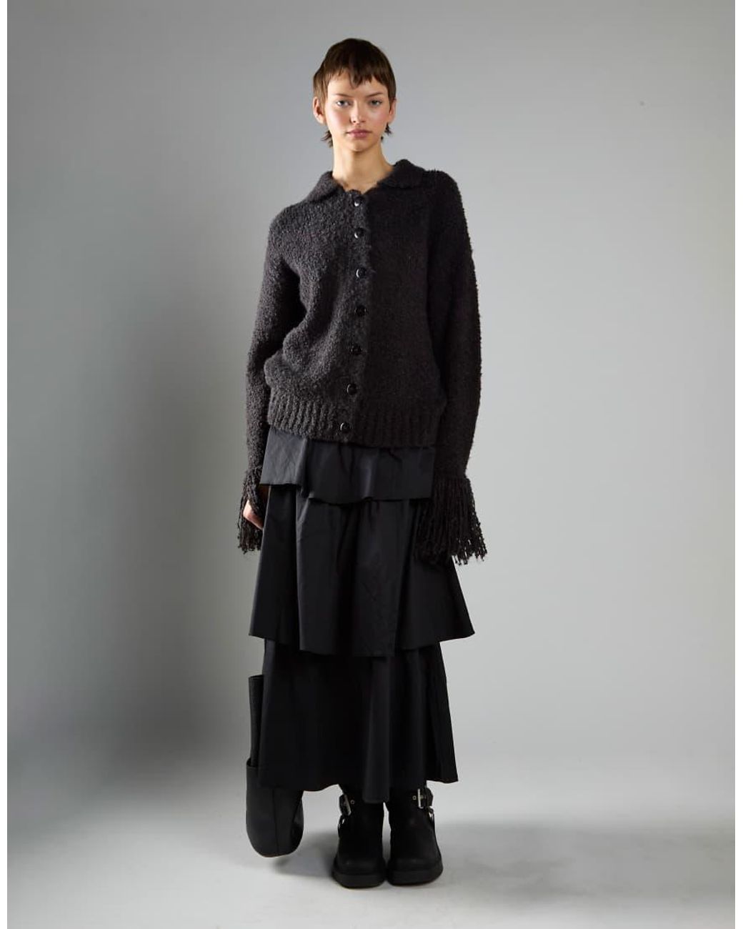 Jumpers & Cardigans by Glamorous Spread collar Button placket Fringe cuff detail Long sleeves Regular fit Colour: black