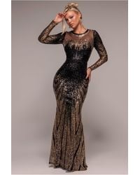 Goddiva Women's Blue Curve Long Sleeve Aztec Sequin Maxi Dress