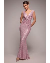 Goddiva Women's Red Twisted Front Sequin Maxi