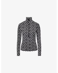 Go to MytheresaMaterial: 76% polyester (recycled), 24% elastane. Care instructions: specialist clean. Made in China. Designer colour name: Cuori black. Item color: black. Closure: half-zipped front. Collar: mockneck. Sleeves: long-sleeved. Slim fit. Hem: straight. Colour: blue