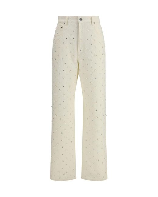 Women's Natural Denim Pearl And Crystal Embroidered Trousers