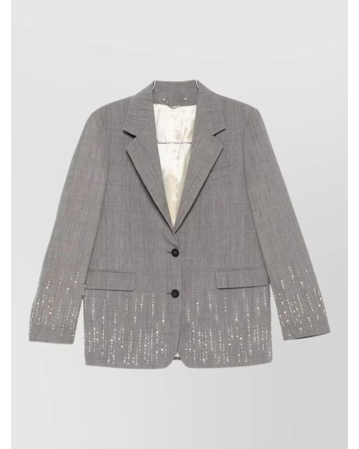 Women's Grey Wool Single Breasted Jacket Check Pattern