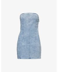 - Embellished Crystal Denim Bandeau Strapless Mini Dress