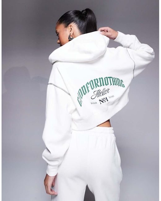 Women's White Co-ord Cropped Zipped Hoodie With Logo Back Print