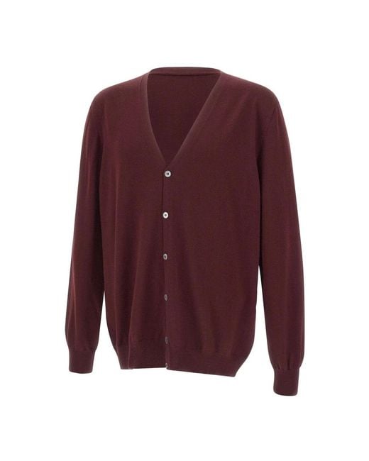 Gran Sasso V-neck Cardigan crafted in extrafine merino wool from the Luxury Collection. It offers soft warmth and a refined finish, ideal for layering over shirts or T‑shirts. Key attributes: Purple | Merino wool | Soft | Warm | Mother-of-pearl button closure | Ideal for layering | V-neck | Long sleeves | Ribbed trims | Dimensions & fit: Regular fit | Composition & care: Merino wool Colour: purple
