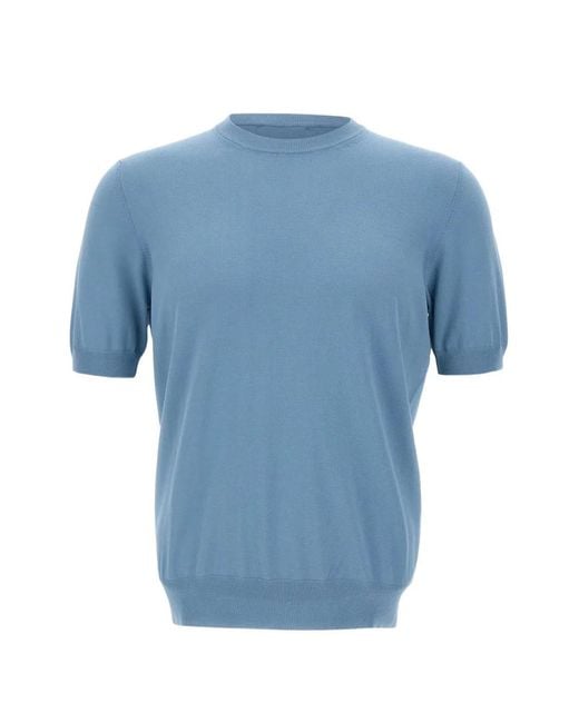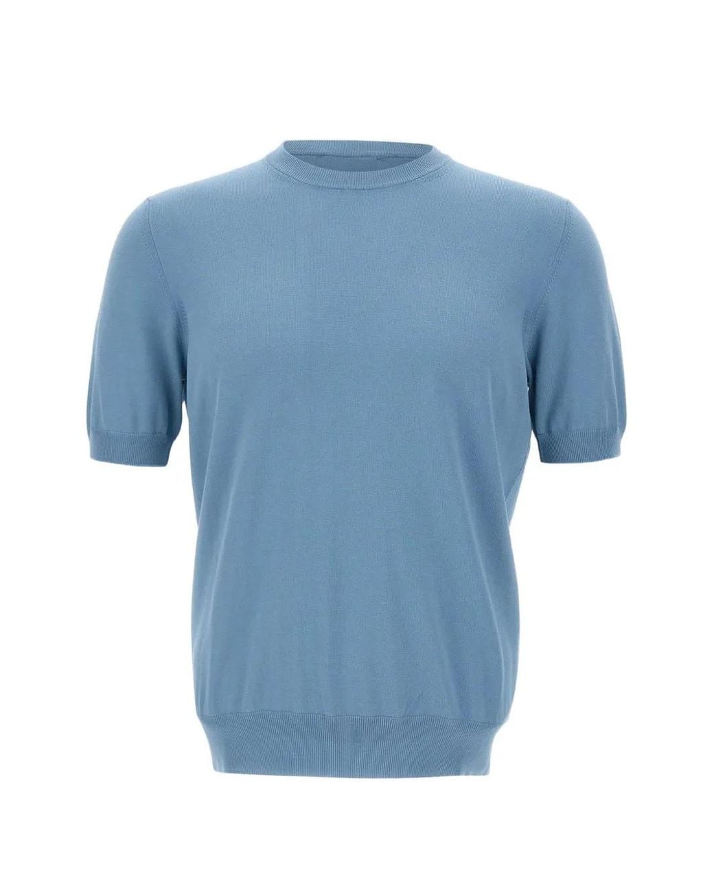 Knitted Round-Neck T-Shirt - Blue