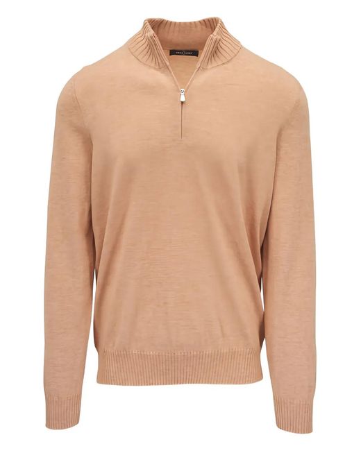 Orange ribbed knit quarter zip fastening long sleeves ribbed hem ribbed cuffs Size: S. Gender: Male. Material:Cotton/Cashmere. Colour: natural