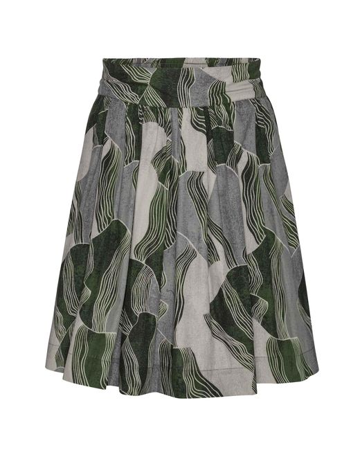This skirt is both versatile and timeless. And it can be worn for any occasion, depending on what you pair it with. The skirt is sewn in organic woven cotton poplin, which has a light and crispy feel and gives a really nice fall in the fabric and an elegant look to the skirt. We have chosen to call the beautiful pattern on the skirt abstract landscape, because it reminds us of the dark green outlines of land in geography books and maps, and the curve lines emphasizing the terrain. You can position the skirt however you like. It has a smooth front and elastic on the back waist. The Svala skirt has deep side pockets, which is both comfortable and practical to wear. The skirt is of course organic and Gots-certified. Certified GOTS organic by CERES - CERES-0367 Fabric composition - 100% organic cotton Wash at 40 degrees max. We recommend 30 degrees fine wash. Colour: green