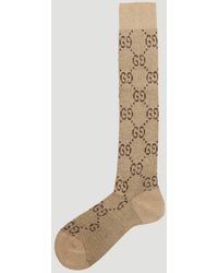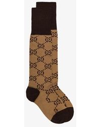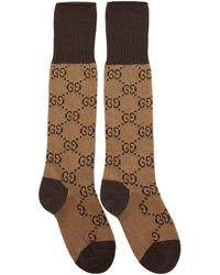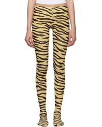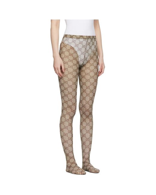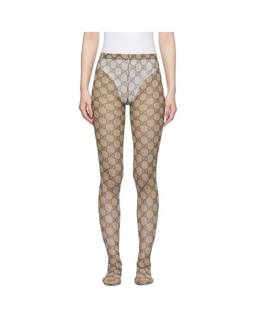 Semi-sheer stretch nylon tights in beige featuring logo pattern in brown throughout. Colour: brown