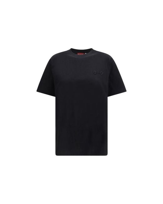 The cotton jersey T-shirt by Gucci conveys understated elegance through the embroidered Horsebit crafted in thread and beads, an iconic detail reimagined with refined subtlety. The crew neckline and short sleeves create a clean silhouette, while the regular fit ensures balanced comfort and style. Season: SS26Fit: RegularComposition: 100% Cotton. Colour: black