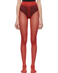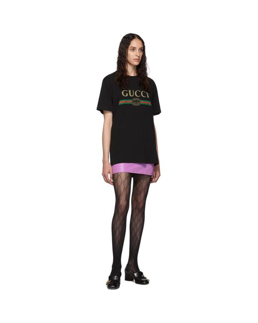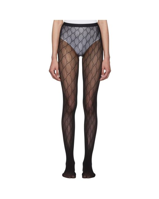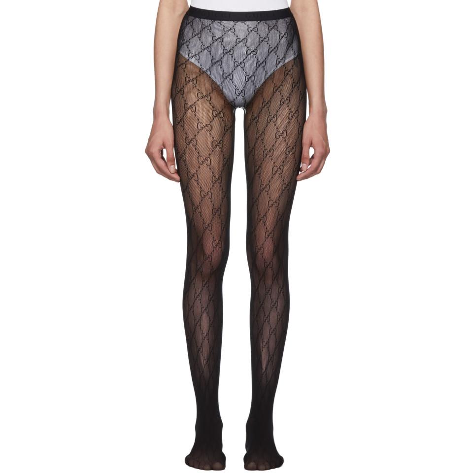 Sheer stretch nylon jersey tights in black. Tonal logo pattern throughout. Colour: black