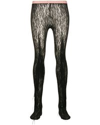 Stretch floral lace tights in black. Elasticized waistband featuring logo knit in beige. Tonal stitching. Colour: black
