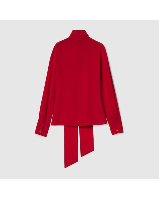 Women's Red Crêpe De Chine Shirt With Neck Bow, Ready-To-Wear
