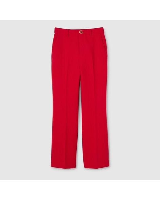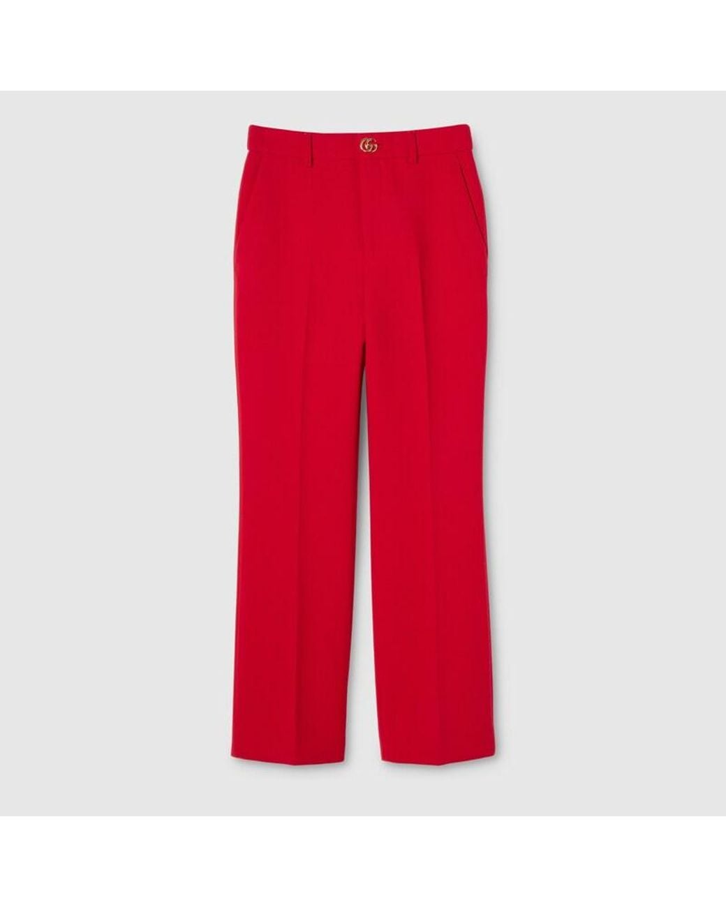 Women's Red Crêpe Wool Trousers With Double G Button
