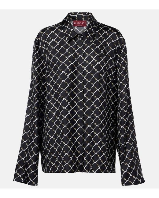 Gg Supreme Printed Silk-Twill Pyjama Shirt - Grey