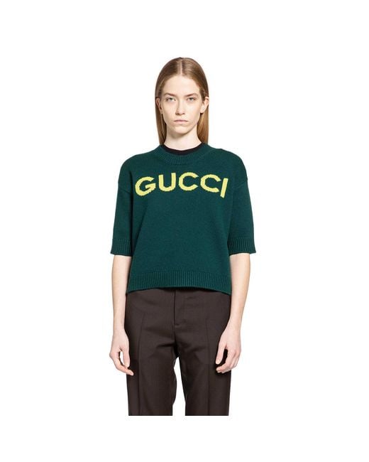 Women's Green Intarsia Wool Top