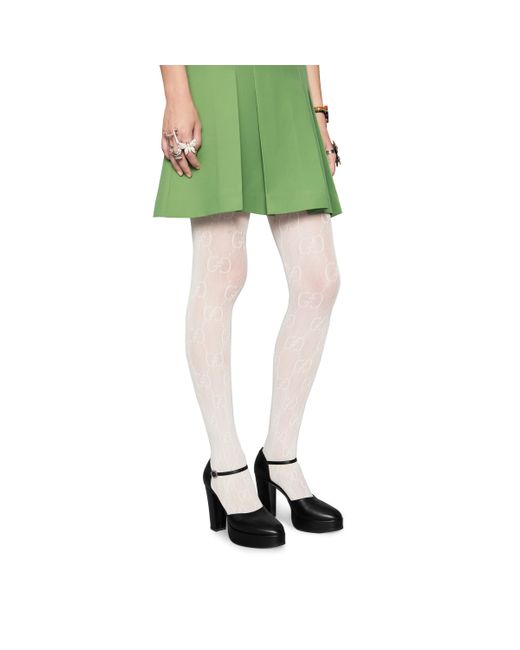 Stretch knit tights with allover interlocking G pattern. Ivory ;Elastic waistband ;80% polyamide and 20% elastane;Made in Italy. Material:Polyamide/Spandex/Elastane.