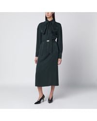 Ivory silk blouse by Gucci, featuring an all-over GG Interlock motif, long scarf collar, long sleeves, buttoned cuffs, elasticized waistband, and metal logo plaque.Gender: WomenMaterial: 100% SilkColor: GREENMade in: ItalyProduct ID: 848566ZATF9/R_GUC-9853*Import tax/duty