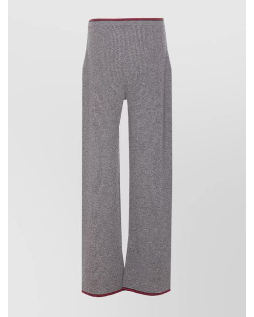 Women's Grey Ribbed Wool Wide-Leg Trousers