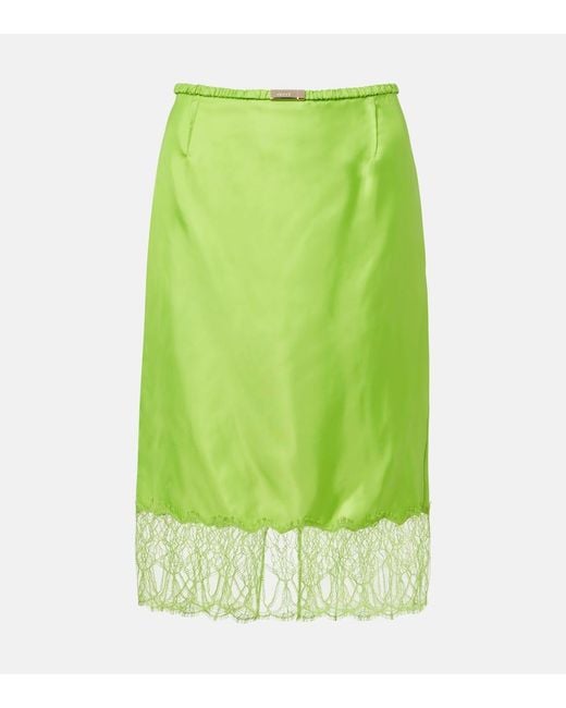 Women's Green Lace-Trimmed Twill Midi Skirt