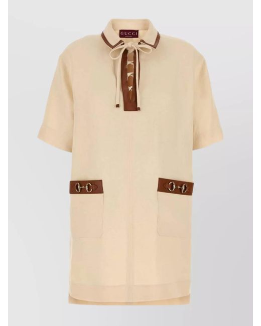 Women's Natural Linen Mini Dress Bow Detail