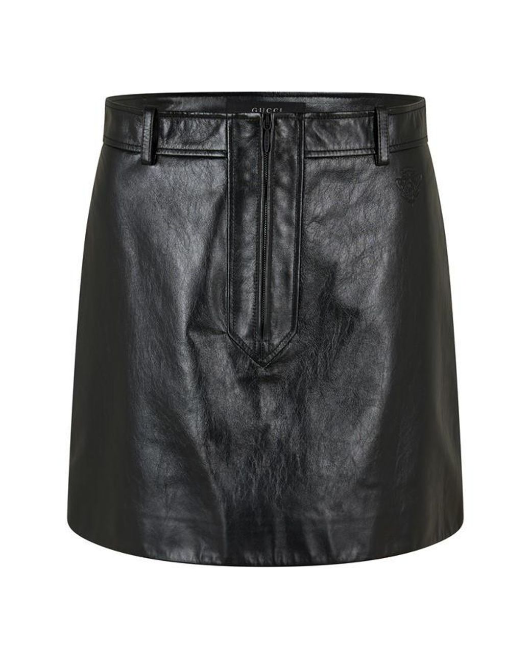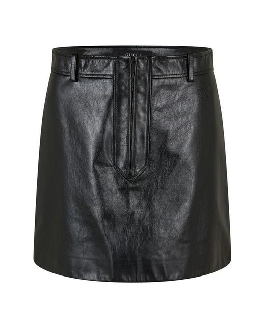 The Gucci Women's Mini Skirt brings a bold shape that sits high on the leg. Its compact cut maintains a streamlined profile without excess volume. Product Highlights • Made from leather for lasting durability • Above-knee length creates a confident, modern look • Structured waistband ensures secure, comfortable wear Colour: black