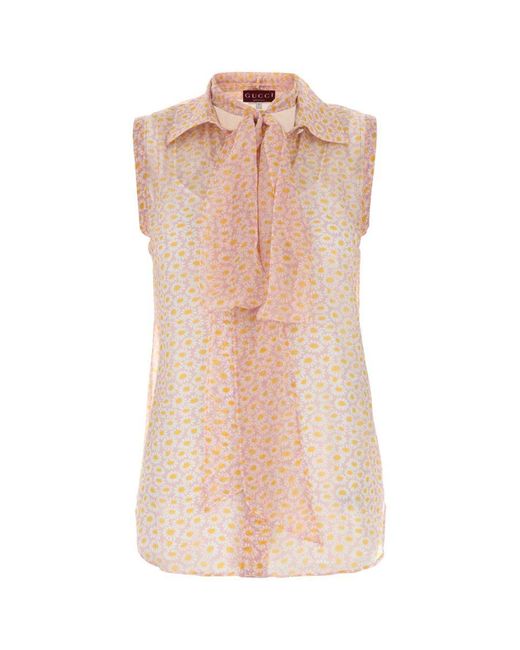- Printed Silk Top With Neck Bow