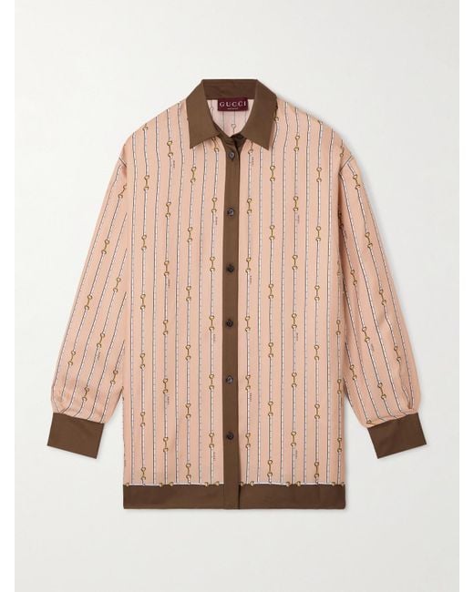 Gucci's shirt is printed with logos and horsebit motifs that pay homage to the house's equestrian heritage. It's been made in Italy from silk-twill with contrasting trims and a relaxed shape. Style yours with denim or the matching pants from our edit.