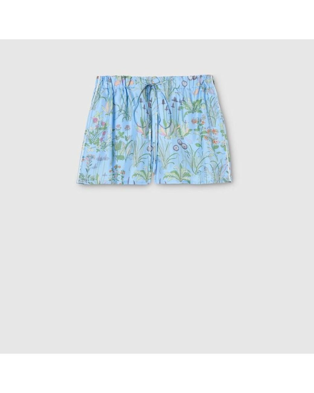 In the Cruise 2026 collection, the House's rich archive of silk foulards imbues ready-to-wear with contemporary sensibility. Floral motifs, gold-toned chains, travelling-inspired subjects are reimagined across fluid silhouettes. Crafted from silk twill, these shorts are defined by an allover floral print. Blue silk twill, Allover floral print, Piping detail, Unlined, Elastic wasiband with drawstring, Side and back pockets, Length: 35 cm based on a size 40(IT), Made in Italy Colour: blue