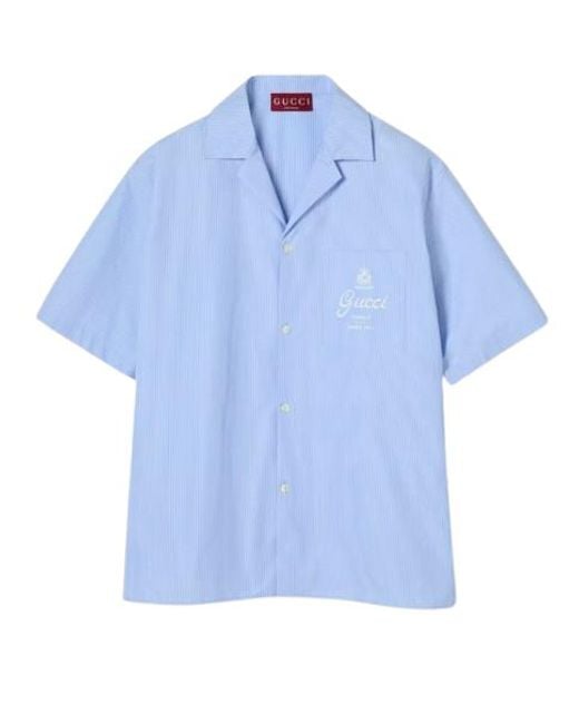 Blue striped pattern camp collar chest pocket short-sleeve button fastening Colour: blue