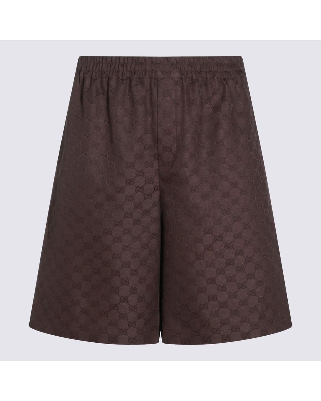 Brown GG shorts from Gucci featuring mid length, elasticated waistband, all over GG motif, side pockets and relaxed fit.Composition: _, 68% Flax, 32% Polyester