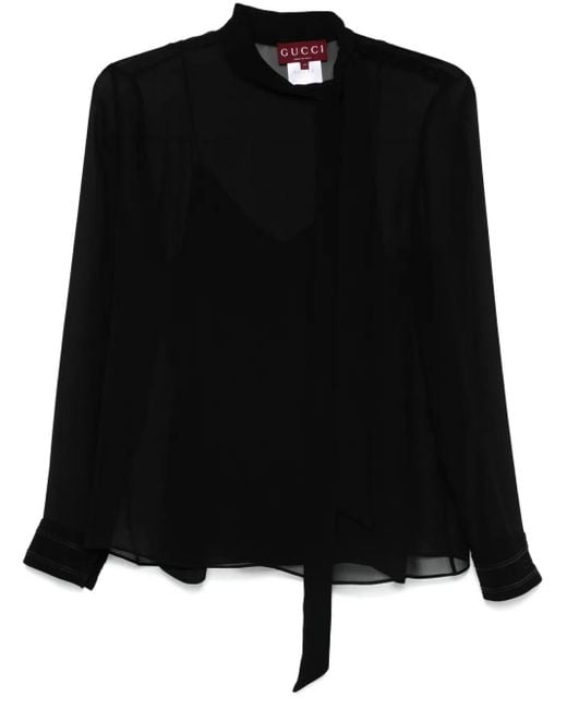 Black silk georgette crepe button fastening at the shoulder high neck tie detail drop shoulder long sleeves buttoned cuffs embroidered logo at the sleeve detachable camisole curved hem Size: 42. Gender: Female. Material:Silk/Silk/Acetate.