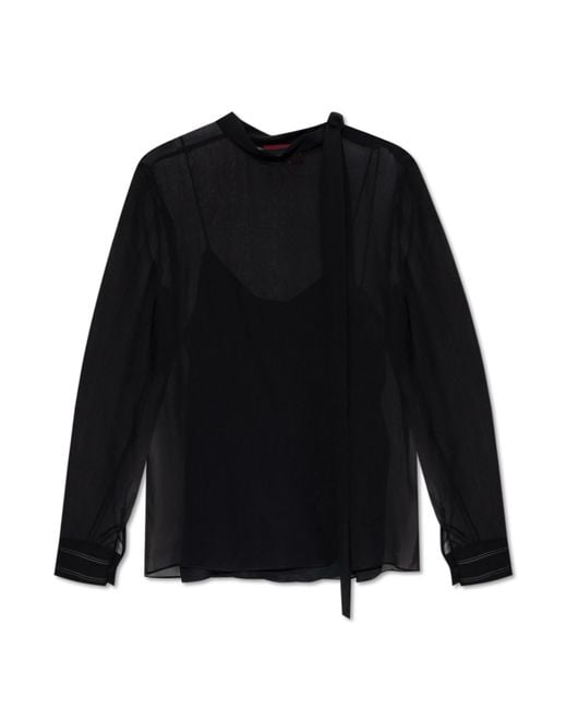Tie-Neck Draped Gathered Silk Satin-Twill Blouse - Pink