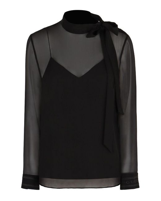 - Silk Georgette Bow Blouse