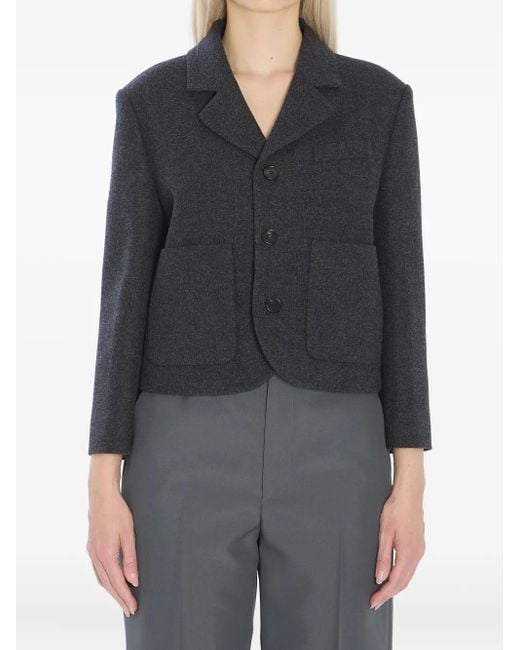 Women's Grey Tailored Wool Jacket Featuring Cropped Fit