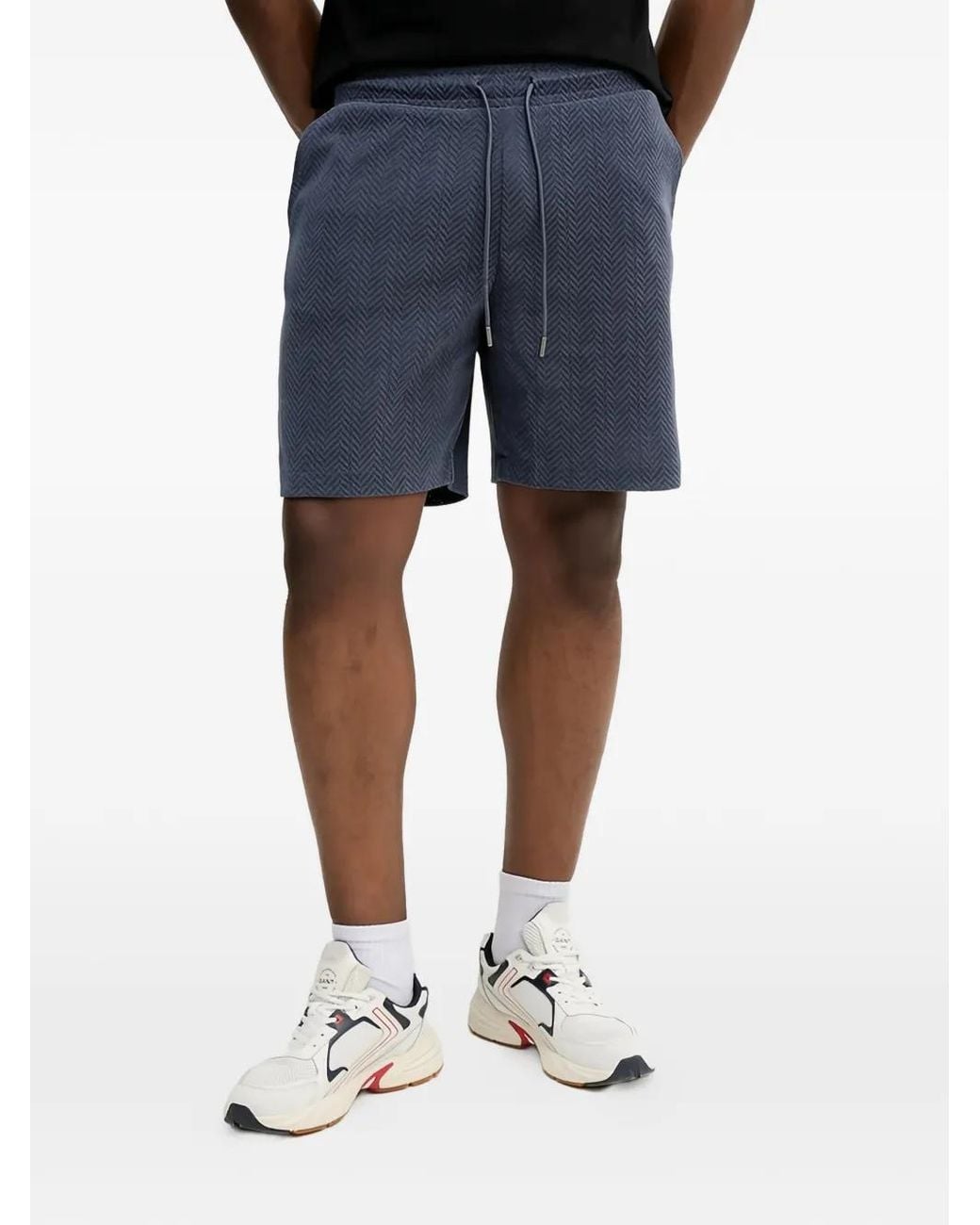 Dark blue herringbone pattern drawstring fastening rear patch-pocket Size: S. Gender: Male. Material:Fabric. Colour: blue
