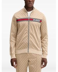 Guess Men's Brown Veste Zippée À Motif Monogrammé