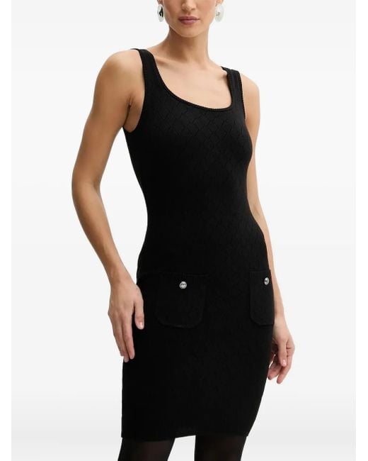 Women's Black Square-Neck Patch-Pocket Mini Dress