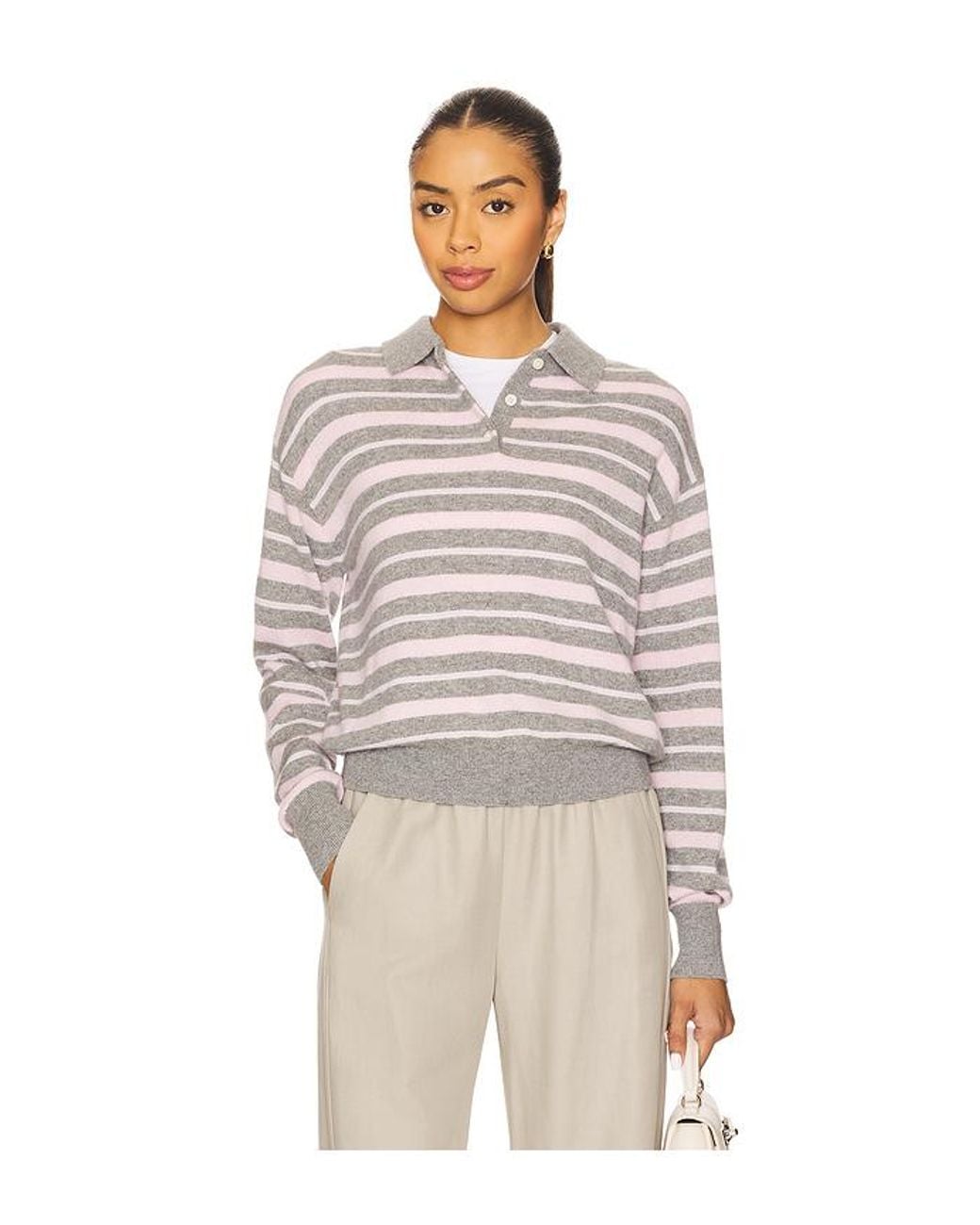 Guest In Residence Collegiate Stripe Polo Sweater in Grey,Pink. Size L. Also in S, XS, M, XL. Guest In Residence Collegiate Stripe Polo Sweater in Grey,Pink. Size S, XS, M, XL. 100% cashmere. Imported. Machine wash recommended. Quarter button closure. GUER-WK3. W38510JL.