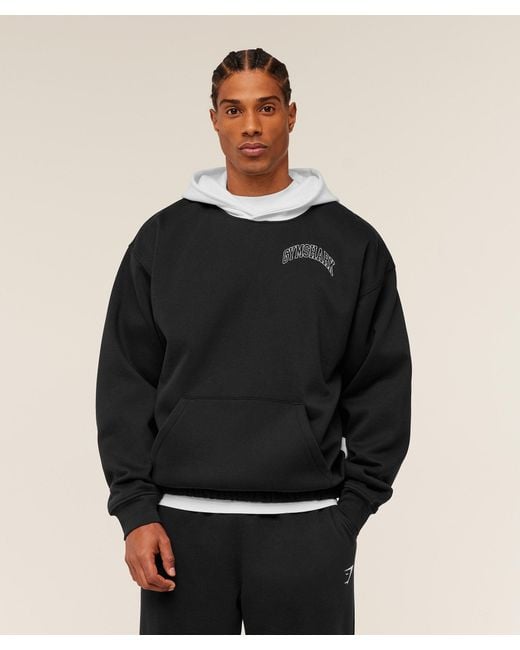 BIG NAME ON CAMPUSWhether you’re repping at the gym or repping the Gymshark name on campus, these collegiate styles are with you. Strong enough for gym. Comfortable enough for rest day. Versatile enough for every day. Soft, comfortable fleece inside Contrast colour block side panels & hood Kangaroo pouch pocket to store your stuff Large graphic on back, small graphic on chest SIZE & FIT Oversized fit Model is 5'10" and wears M MATERIALS & CARE 58% Polyester, 42% Cotton 330gsm, heavyweight fabric SKU: A4C9M-BB2J Colour: black