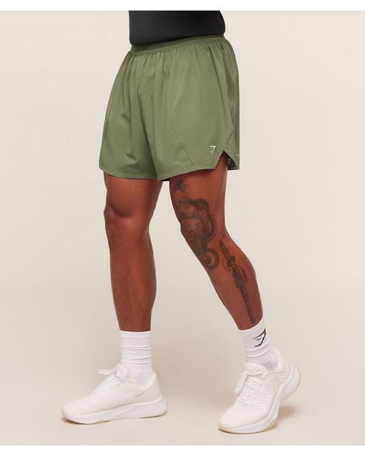 LIGHTWEIGHT, REFLECTIVE RUNNING LAYERSWhether you’re just ticking off your daily miles or training for a marathon, our running collection keeps you going with breathable, sweat-wicking fabrics, soft brushed linings and reflective details to keep you safe. Adjustable internal drawcord waist Ventilation waistband keeps you cool Secure zipped back pocket for essentials Angled hems & open overlapping side splits for more freedom of movement Inner brief lining for comfort, support & breathability SIZE & FIT Regular fit 5” inseam based on size M Model is 6'0" and wears size M MATERIALS & CARE86% Recycled Polyester, 14% ElastaneSKU: A3B9Q-EDCZ Colour: green