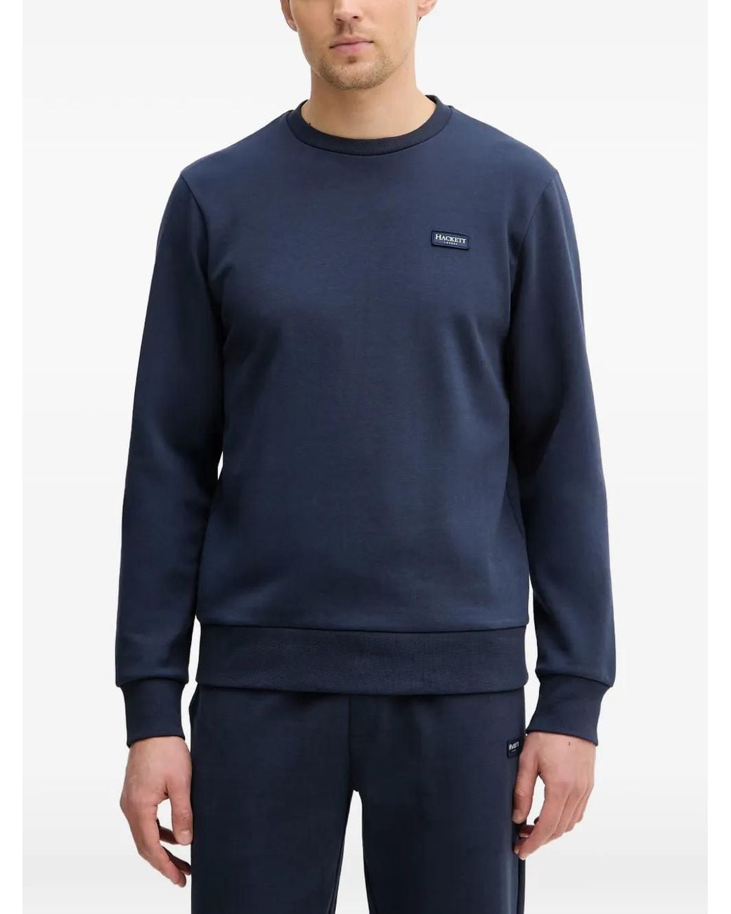 Blue crew neck logo patch long sleeves ribbed hem ribbed cuffs Size: S. Gender: Male. Material:Cotton/Polyester. Colour: blue